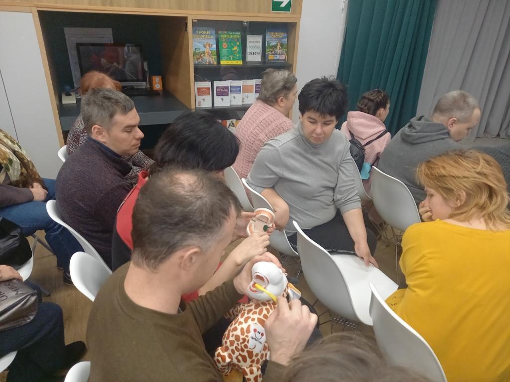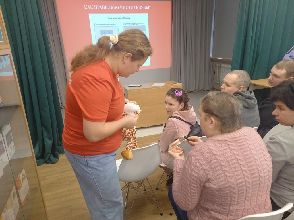 Лекция была посвящена гигиене полости рта. Гостем встречи стала волонтер-медик Анна Постникова, студентка Медицинского института НИУ «БелГУ». Она рассказала, как правильно выбрать зубную щетку и какие виды щеток существуют. Также Анна поделилась советами по чистке зубов и языка.